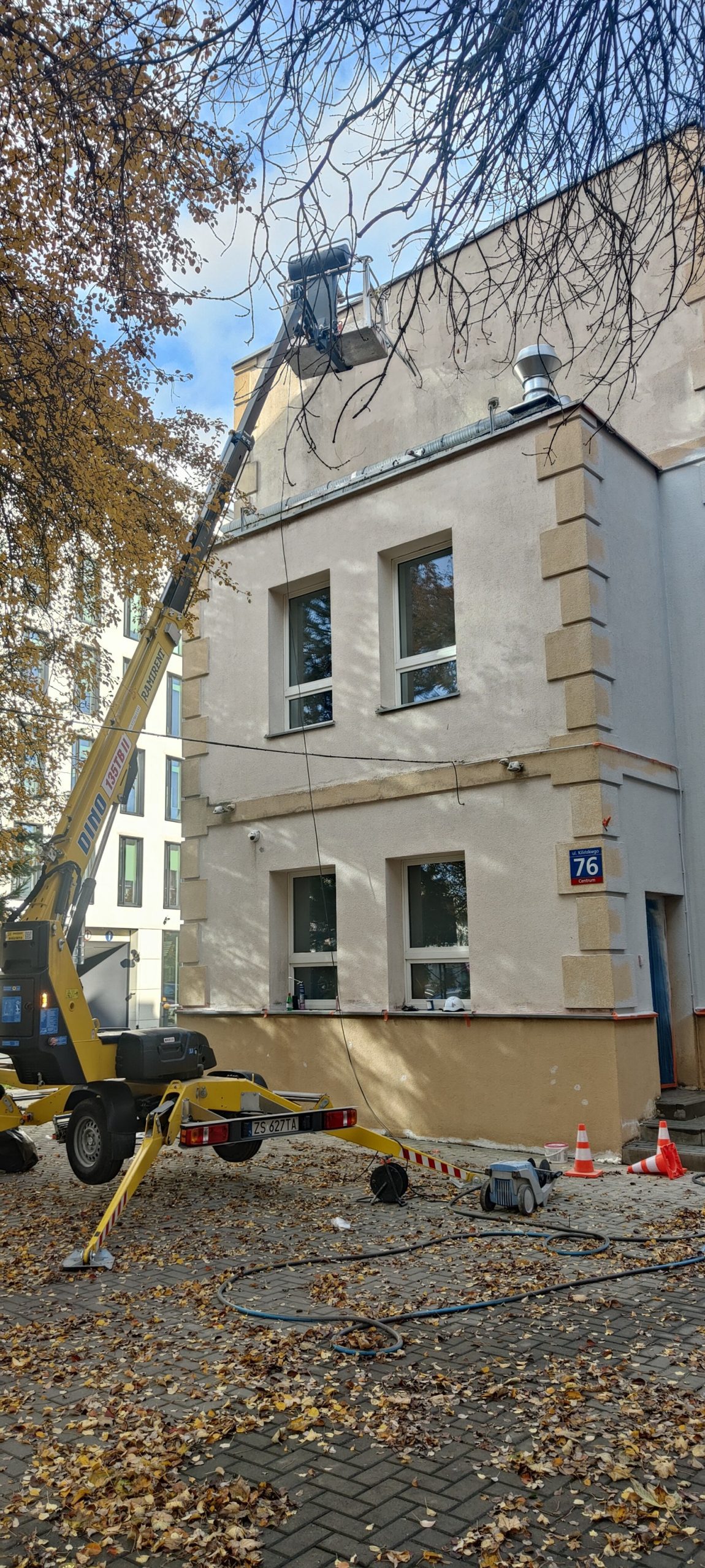 Malowanie i wymiana nowych systemów rynnowych na Ulicy Wiejskiej w Warszawie: