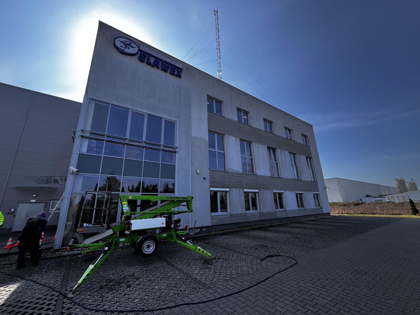 Malowanie elewacji Przedsiębiorstwa Farmaceutycznego Slawex: